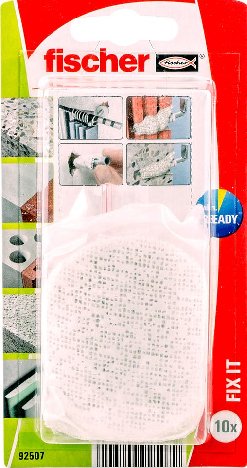 fischer Reparaturvlies FIX.itErste Hilfe bei zu großen BohrlöchernEinfache HandhabungAusstattung: Für ausgebrochene Bohrlöcher in porösem Mauerwerk und HohlwändenIn Wasser getauchtes Pad um den Kunststoffdübel wickeln und ins Bohrloch eindrehen, verarbeitbar nach 3 minFür Leichtbefestigungen an Wand und Decke geeignet.Universeller Einsatz bei ausgebrochenen, zu groß oder unsauber gebohrten Bohrlöchern. Anbauteil kann an vorgesehener Stelle bleiben, da keine neue Bohrung erforderlich ist. Geeignet auch zum Verschließen von Bohrlöchern vor dem Überstreichen.Technische Daten: Inhalt: 10 St.Material: Gips-Vlies