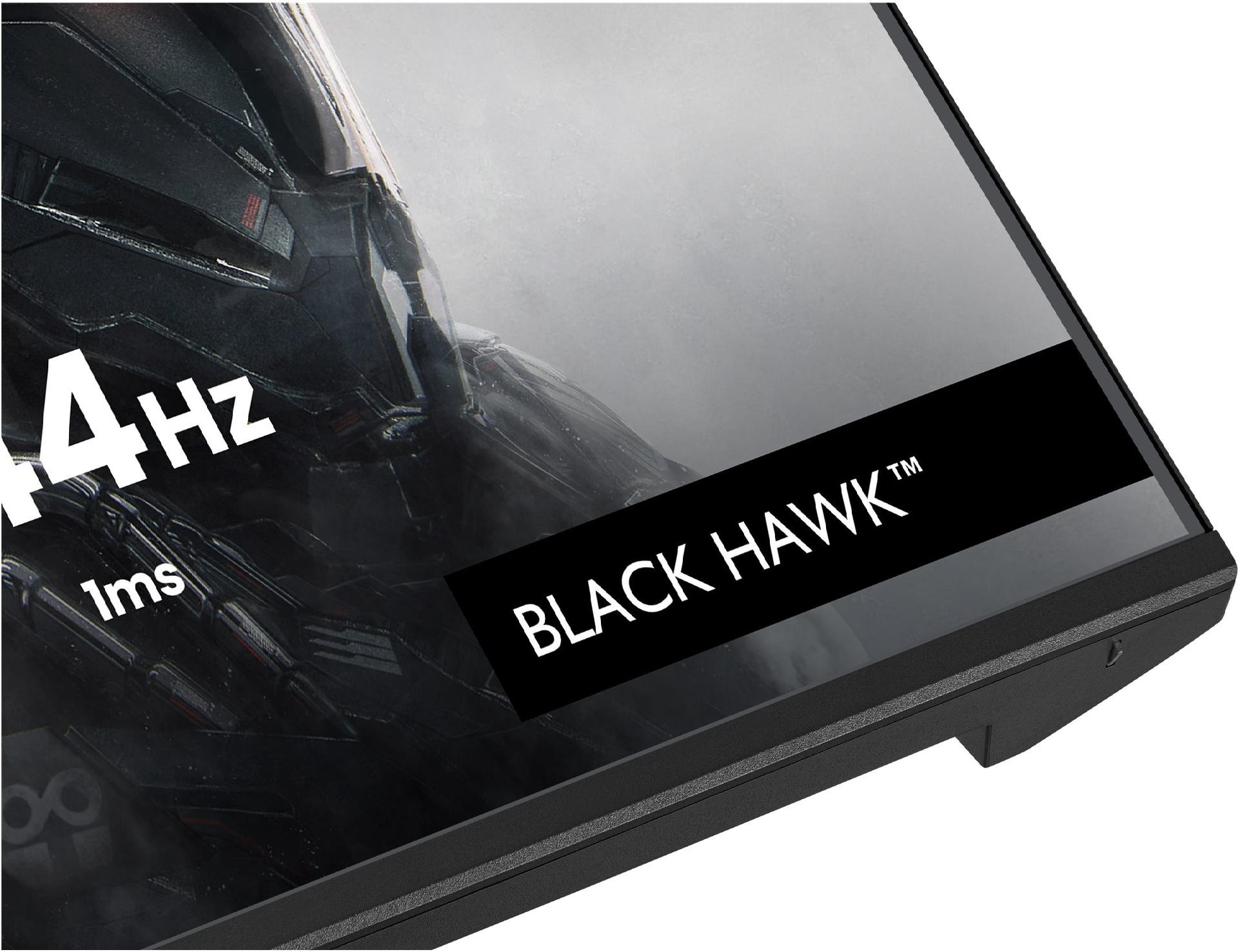 Der iiyama G-MASTER Black Hawk G2441HSU-B1 wurde für Gamer und Multimedia-Enthusiasten entwickelt, die Leistung ohne Einbußen bei der Bildqualität suchen. Mit einem 24-Zoll-Display und einer nativen Auflösung von 1920 x 1080 liefert dieser Monitor Full-HD-Bilder mit lebendigen Farben, unterstützt durch eine Helligkeit von 350 cd/m2 und ein Kontrastverhältnis von 1500:1. Die IPS-Technologie und der weite Betrachtungswinkel von 178 Grad sorgen für ein klares und gleichmäßiges Seherlebnis aus jeder Position und machen ihn ideal für Gaming- und Arbeitsumgebungen.Ausgestattet mit einer schnellen Reaktionszeit von 1 ms und einer V-Sync-Rate bei einer maximalen Auflösung von 144 Hz minimiert dieser Monitor Bewegungsunschärfen und sorgt für ein flüssigeres Spielerlebnis. Darüber hinaus verbessern Funktionen wie die flimmerfreie Technologie, die Blaulichtreduzierung und der Eco-Modus den Komfort bei längerer Nutzung. Der integrierte USB-Hub und das integrierte Kabelmanagement optimieren die Konnektivität und Organisation, während die VESA-Kompatibilität vielseitige Montagemöglichkeiten ermöglicht.Der iiyama G-Master G2441HSU-B1 Black Hawk bietet Gamern genau das, was sie benötigen: Das 60,5 cm (23,8\") große IPS-Panel überzeugt durch besonders konsistente Farben und große Betrachtungswinkel. Mit der FullHD-Auflösung (1920 x 1080 Pixel) werden Inhalte brillant scharf dargestellt, um Spiele, aber auch Filme und Serien oder auch Textinhalte optimal zu erkennen. Um Spielern maximale Vorteile zu bieten, ist der G-Master G2441HSU-B1 mit einer Bildwiederholrate von 144 Hz sowie einer niedrigen Reaktionszeit von 1 ms (MPRT) ausgestattet. Mit Unterstützung der Free-Sync-Technologie und Black-Tuner-Funktion erlebt man ein flüssiges Spielerlebnis ohne lästige Ruckler und Lags, dafür mit einem kristallklaren Bild selbst in den dunkelsten Szenen.Hauptmerkmale