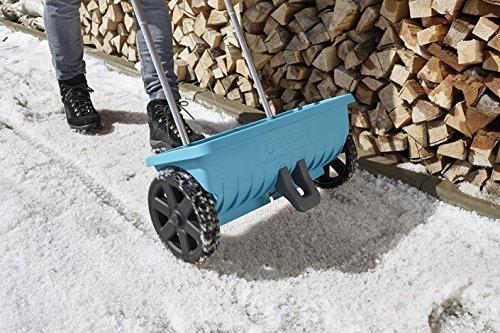 Der Gardena Streuwagen L eignet sich optimal zum komfortablen Ausbringen von Dünger und Streusalz auf mittelgroßen Flächen. Er lässt sich einfach über die Auf-/Zu-Funktion per Handgriff bedienen, an dem auch die Streumenge eingestellt wird. Der Abdeckschieber mit Dichtlippe schließt den Streubehälter so dicht ab, dass im Stand, beim Befüllen oder nach Gebrauch nichts nachrieselt. Die spezielle Streuwalze im Gardena Streuwagen L verteilt das Streugut absolut gleichmäßig, sauber und nur an den Stellen, wo es auch hin soll. Der Streuwagen kann einfach mit Wasser gereinigt werden.