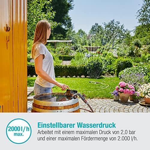 Gardena 14602-20. Vorgesehene Verwendung: Garten, Produktfarbe: Schwarz, Blau, Orange. Maximaler Betriebsdruck: 2 bar, Max. Förderhöhe: 20 m, Maximale Fördermenge: 2000 l/h. Energiequelle: Akku. Kabellänge: 2 m (14602-20)