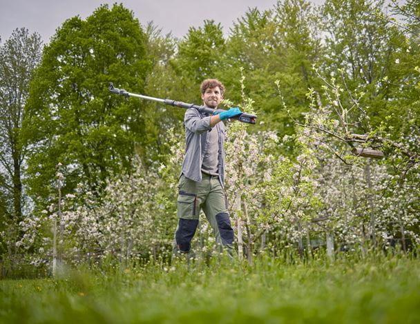 Für bequeme Baumschneidearbeiten vom Boden aus bis in die Baumkrone