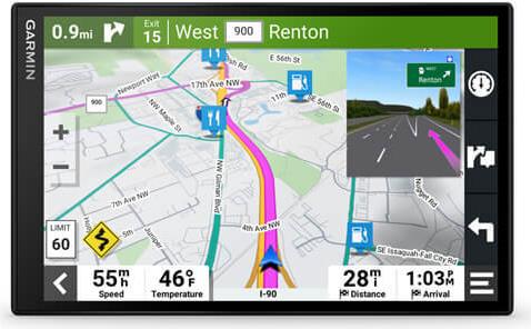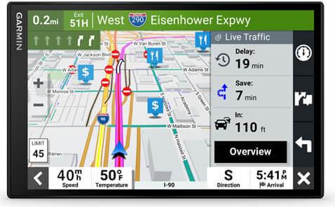 Freisprechen über Bluetooth, Geschwindigkeitsmesser-Warnungen, Terrain 3D, Anzeige von Straßenkreuzungen, Warnung im Bereich von Schulen, Garmin Real Directions, Live Traffic-Updates, Smart-Benachrichtigungen, Point Of Interest (POI), Halterung für drahtlose Rückfahrkamera, 3D Buildings, Red Light Camera Alerts, Amazon Alexa