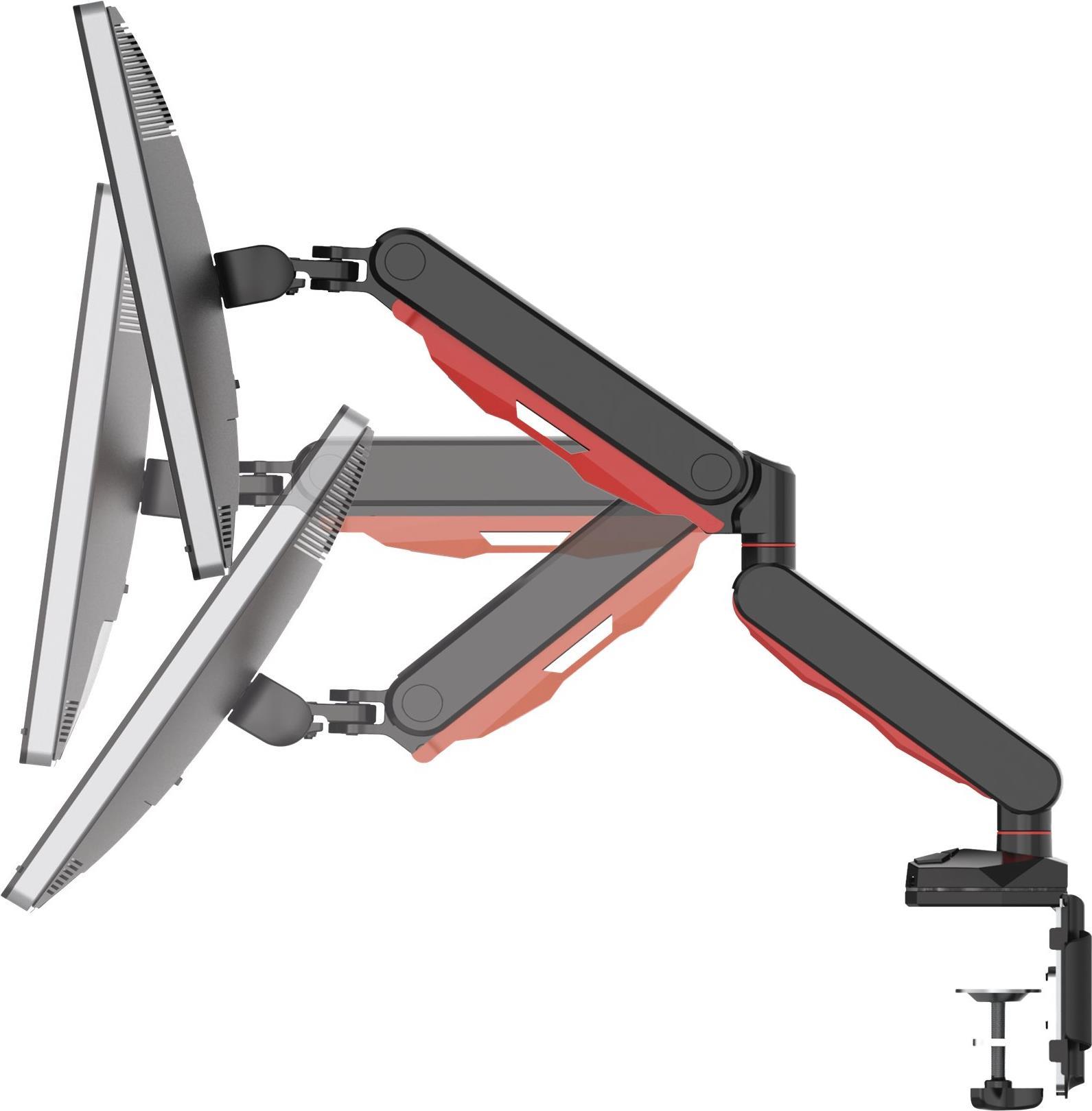 Bringe Deine Gaming-Ausrüstung auf eine höhere Stufe. Der iiyama DSG3001C-B1 Gasdruckfederarm ist für Monitore bis zu 9 kg Gewicht gedacht. Ein dynamisches rot-schwarzes Design mit einem LED-Streifen an der Basis signalisiert, dass Du ein echter Gamer bist. Zwei USB-Docks erleichtern einen Anschluss zusätzlicher Hardware. Der Gasdruckfederarm lässt sich mühelos verstellen, damit Du in einer ergonomischen und bequemen Position spielen kannst. Ein hervorragendes Kabelmanagementsystem befreit Deinen Schreibtisch von störenden Kabeln.Hauptmerkmale