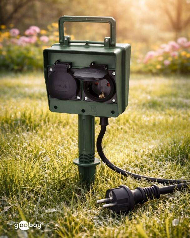 Goobay 55943 Verlängerungskabel 2 m 2 AC-Ausgänge Outdoor Schwarz - Grün (55943)