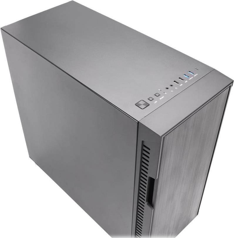 Das Deep Silence 8 pro 3.1 bietet neben einem USB 3.1 (Typ C) zwei USB 3.0 und 2x USB 2.0 Steckplätze. Neben den Anschlüssen für Kopfhörer und Mikrofon findet auch ein Reset-Knopf seinen Platz auf der Oberseite des Gehäuses.