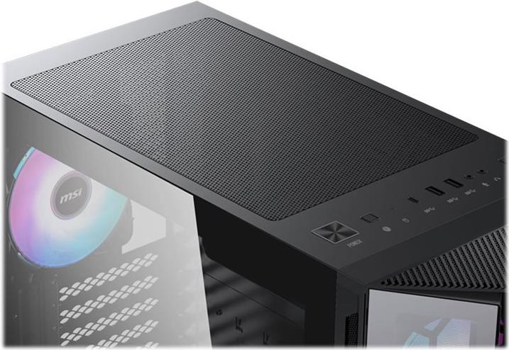 | Systemgehäuse-Merkmale | Unterstützt Radiator (120 mm) in der Rückseite, magnetischer Staubfilter, unterstützt 120/140/240/280/360 mm Radiator in Vorderwand, Support für 120/240 mm Radiator oben, MSI RGB Mystic Light Sync, ARGB-Lüfter, LED-Steuertaste |