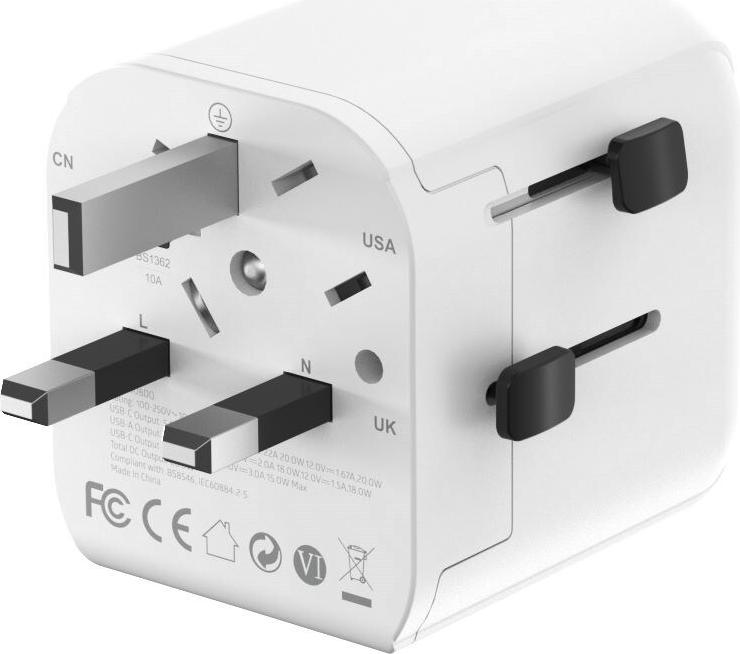 • Gembird TPA-EU1A1C20-01-W Geerdeter Universal-Reiseadapter, 20 W, weiß (TPA-EU1A1C20-01-W)