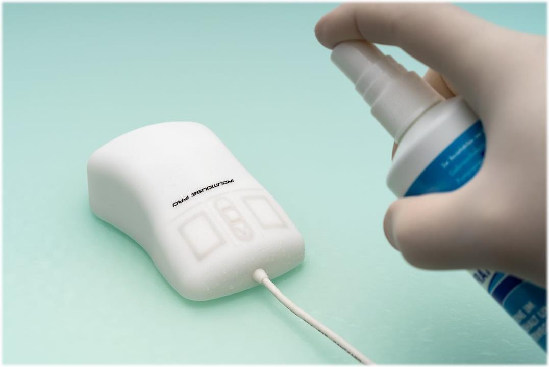 Doch die InduMouse Pro kann noch mehr: Ihr hoher Schutzgrad IP68 ermöglicht eine umfassende und gründliche Reinigung und Desinfizierung. Ein Nano-Silber-Additiv im Silikonmantel bietet zusätzlichen Schutz vor Keimansiedlungen. Diese Maus hilft also aktiv bei der Vermeidung einer Ausbreitung von Krankheitserregern, und hält damit einen hohen Hygieneschutzgrad ein.