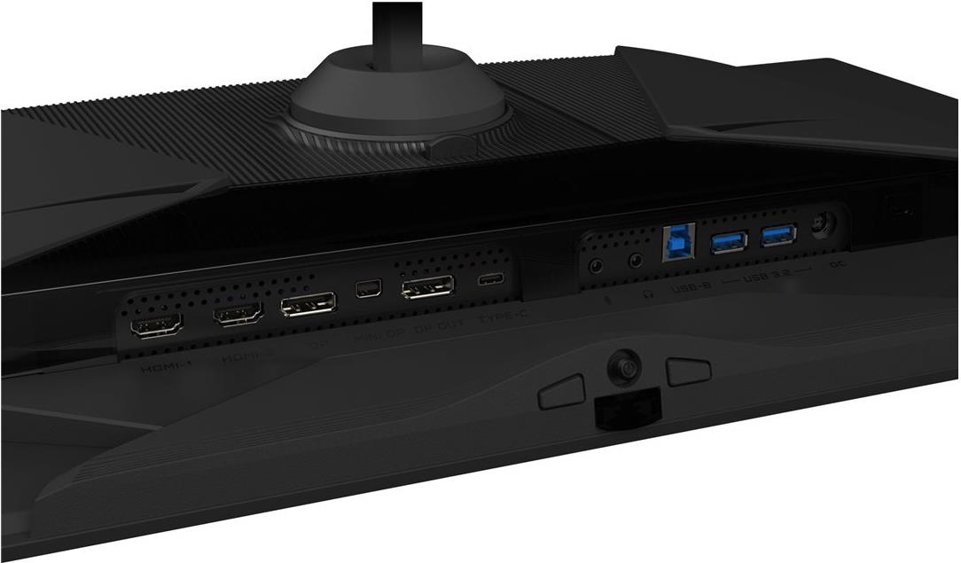 1x Mini DisplayPort 2.1 UHBR20, 2x HDMI 2.1, 1x DisplayPort-Out 1.4, 1x DisplayPort 2.1 UHBR20, 1x USB-C 3.0 mit DisplayPort 2.1 (Upstream, 5Gb/?s, PD 65W), 1x USB-B 3.0 (Upstream, 5Gb/?s), 2x USB-A 3.0 (Downstream, 5Gb/?s), 1x 3.5mm Klinke (Line-Out), 1x 3.5mm Klinke (Line-In), 1x DC-In Hohlbuchse (Netzanschluss) |