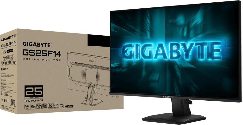 | Inhalt | Gigabyte GS25F14 Monitor, Standfuß, Netzkabel, HDMI-Kabel, Kurzanleitung (QSG), Garantiekarte |