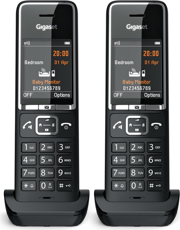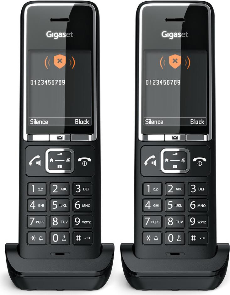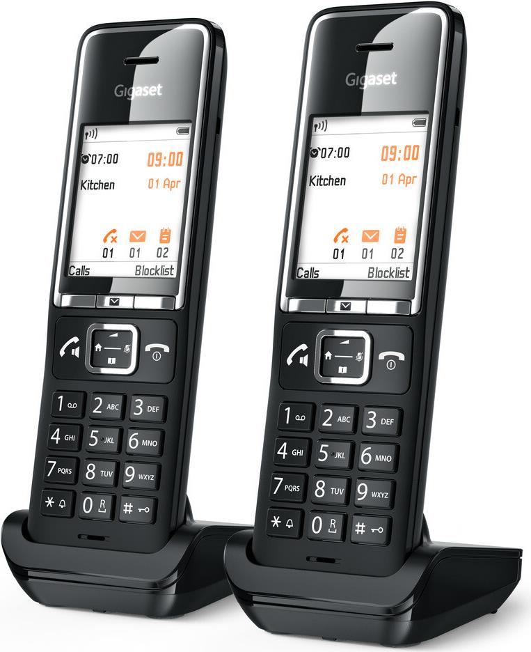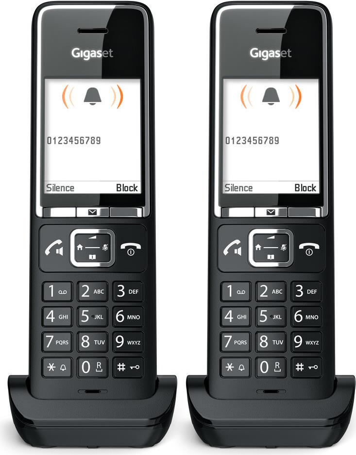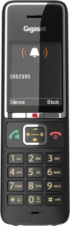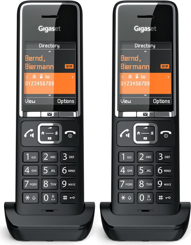 Gigaset COMFORT 550HX. Typ: Analoges/DECT-Telefon, Hörertyp: Kabelloses Mobilteil. Freisprecheinrichtung, Telefonbuch Kapazität: 200 Eintragungen. Anrufer-Identifikation. Bildschirmdiagonale: 5,59 cm (2.2"). Produktfarbe: Schwarz. Anzahl enthaltener Handsets: 2 (L36852-H3051-R104)
