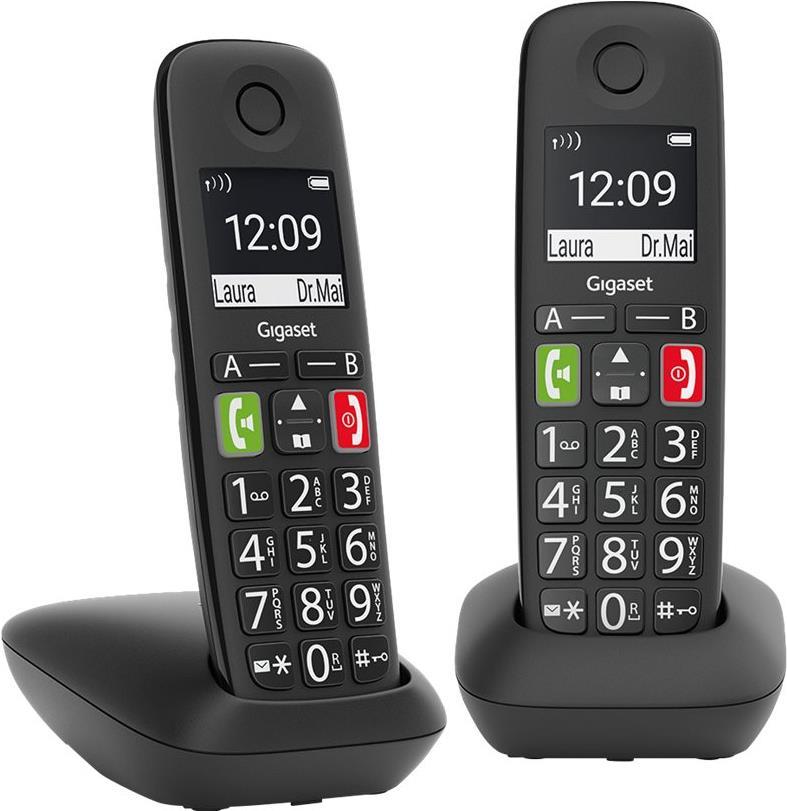 Gigaset E290 Duo - Schnurlostelefon mit Rufnummernanzeige - ECO DECT\GAP - Schwarz + zusätzliches Handset (L36852-H2901-B101)