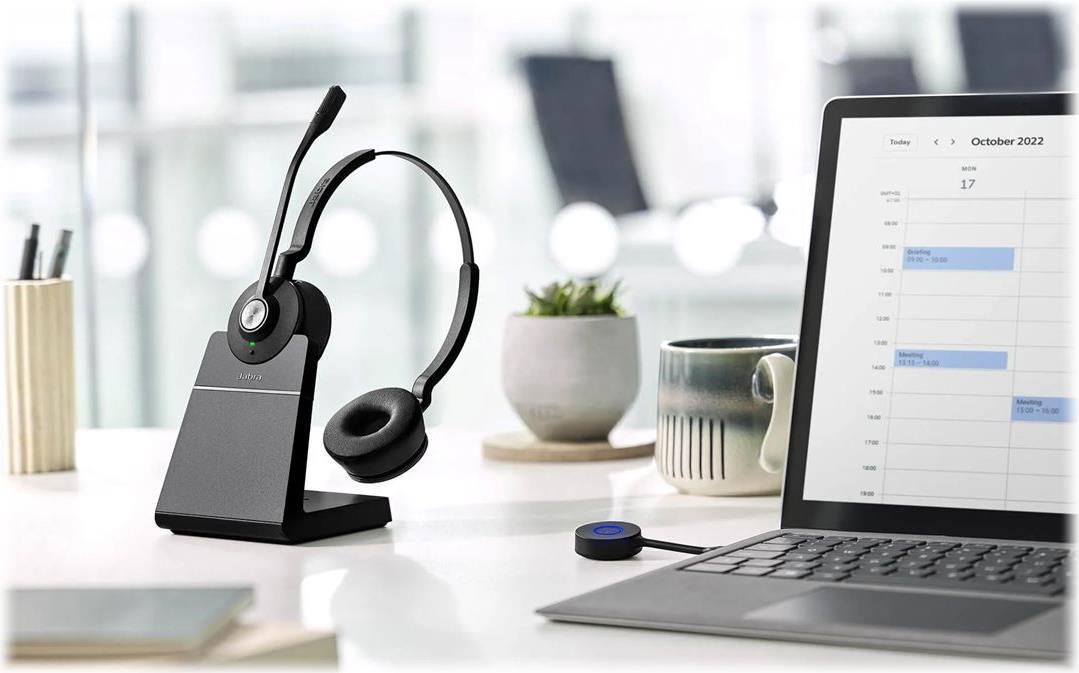 Das Jabra Engage 55 ist ideal für Hybrid-Mitarbeitende, die den Großteil ihres Arbeitstages mit Anrufen oder virtuellen Meetings verbringen.Mit seinem leichten Design für ganztägigen Tragekomfort, der außergewöhnlichen schnurlosen Reichweite und der hohen DECT-Sicherheitsstufe C ist es das ideale Headset für hybrides Arbeiten.