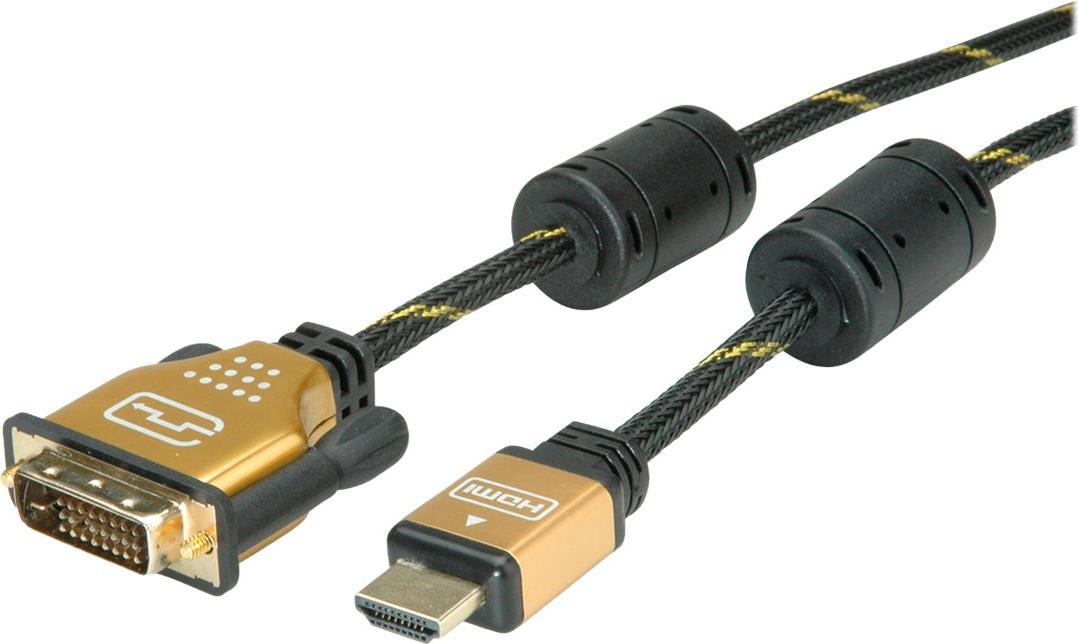 ROLINE GOLD HDMI zu DVI Kabel für das Verbinden eines Ultrabooks, Notebooks/Laptops oder PCs mit einem Monitor, TV, Beamer oder Projektor - für Bildschirmübertragungen in exzellenter Qualität mit einer Auflösung von bis zu 3840x2160 @30Hz!
