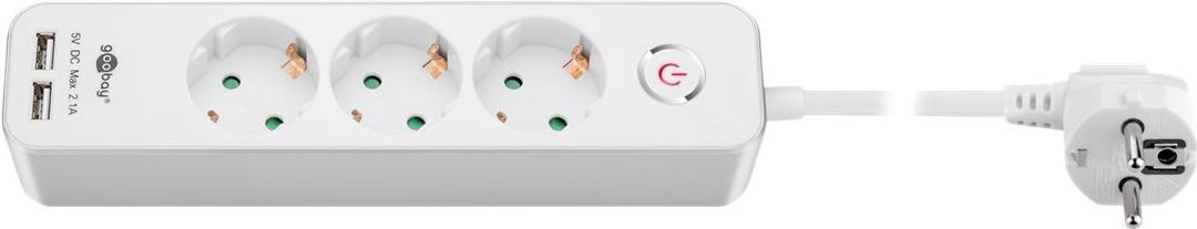 Goobay 3-fach Steckdosenleiste mit Schalter und 2 USB Ports, Weiß, 1.5 m - zum Anschluss von bis zu drei Elektrogeräten und zwei USB-Geräten (41264)
