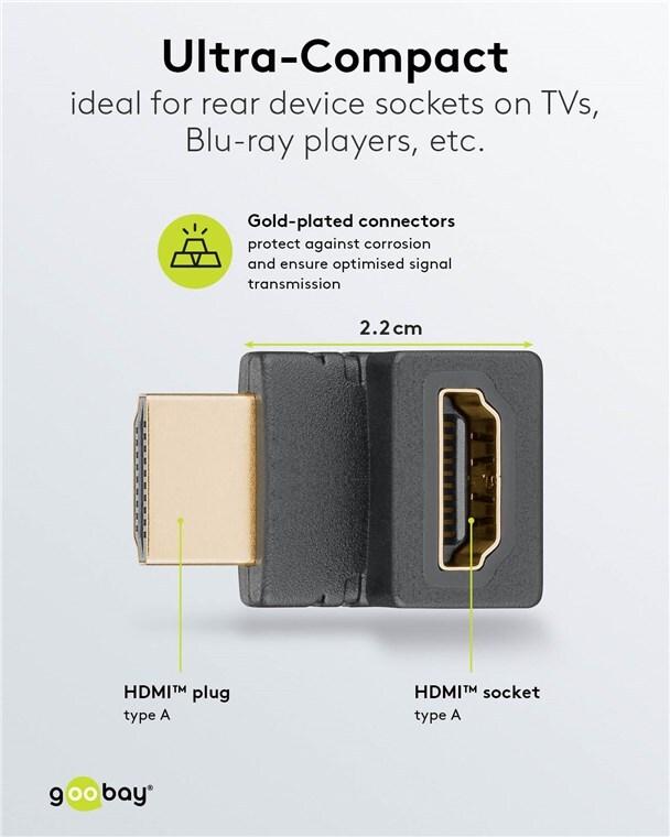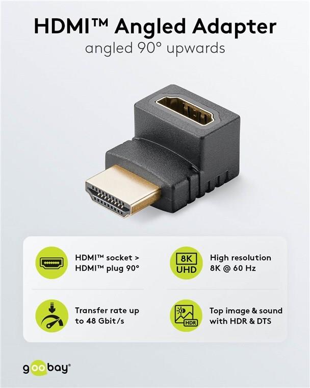 Goobay HDMI™-Winkeladapter 90° vertikal, 8K @ 60 Hz, vergoldet (65744)