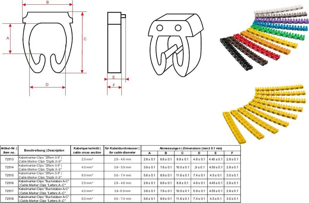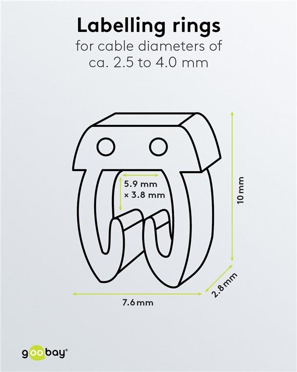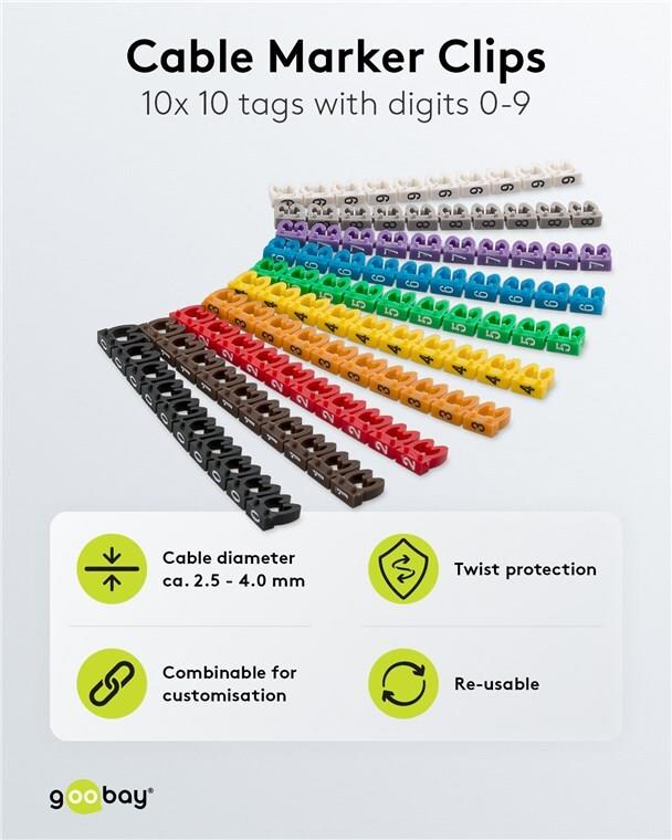 Goobay Kabelmarker-Clips "Ziffern 0-9", für Kabeldurchmesser bis 4 mm, 4 mm - farbige Kennzeichnungsringe 10x 10 Stück zum Markieren von z.B. Netzwerkkabeln (72514)