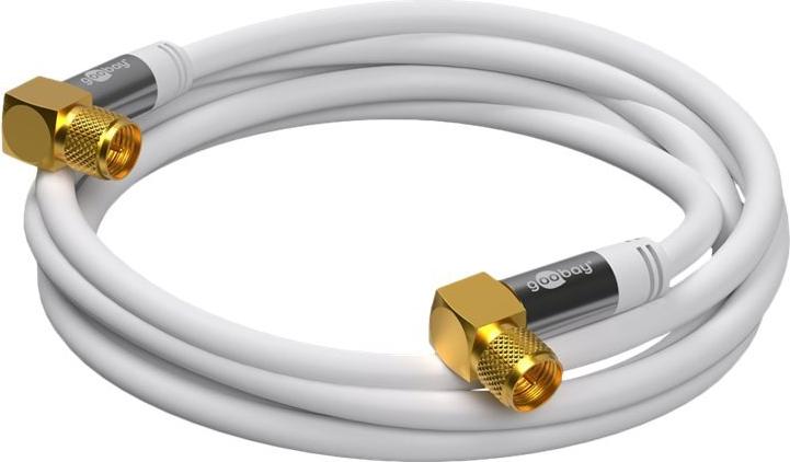 Goobay SAT Antennenkabel (135 dB typ), 4x geschirmt, 1 m, Weiß - vergoldet, F-Stecker 90° > F-Stecker 90° (70481)