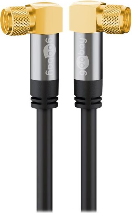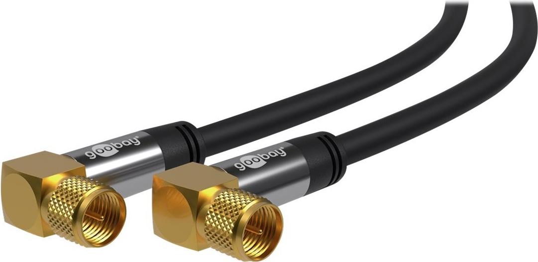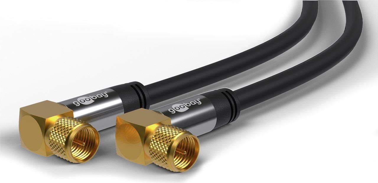 Goobay SAT Antennenkabel (135 dB typ), 4x geschirmt, 2 m, Schwarz - vergoldet, F-Stecker 90° > F-Stecker 90° (70573)