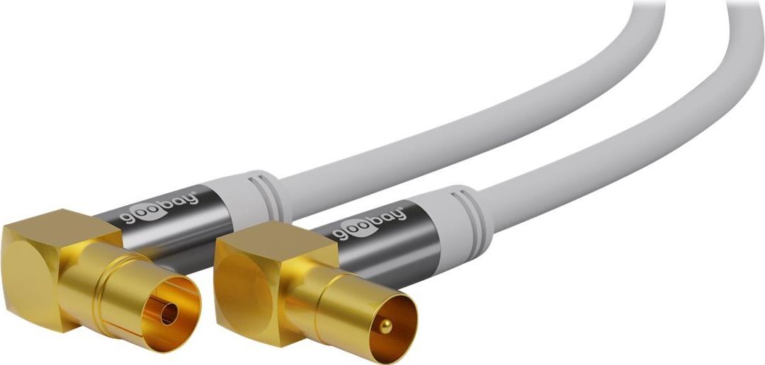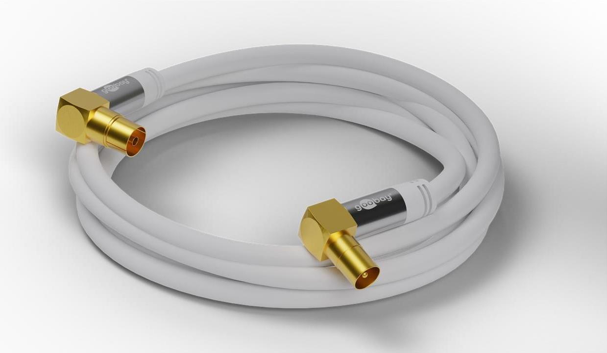 Goobay TV Antennenkabel (135 dB typ), 4x geschirmt, 3 m, Weiß - vergoldet, Koax-Buchse 90° > Koax-Stecker 90° (70420)