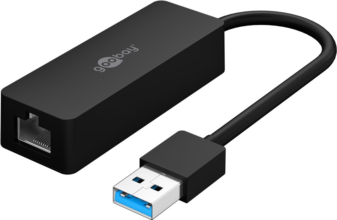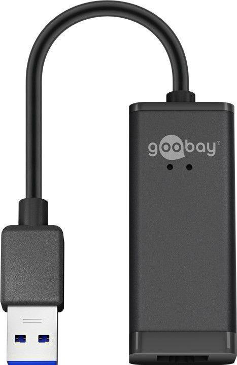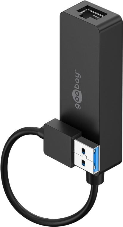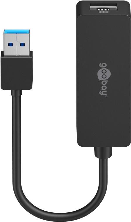 Goobay USB 3.0 Gigabit Ethernet Netzwerkkonverter, Schwarz, 0.1 m - zum Anschluss eines PC/MAC mit USB Anschluss an ein Ethernet Netzwerk (39038)