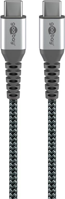 Goobay USB-C™ auf USB-C™ Textilkabel mit Metallsteckern (space grau/silber) 2 m, 2 m, Schwarz-Grau - elegantes und extra-robustes Verbindungskabel für Geräte mit USB-C™ Anschl (49303)