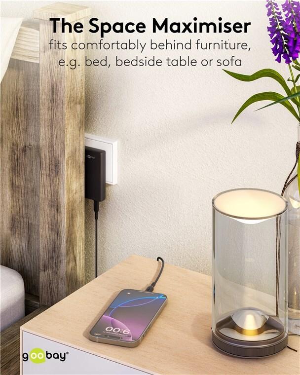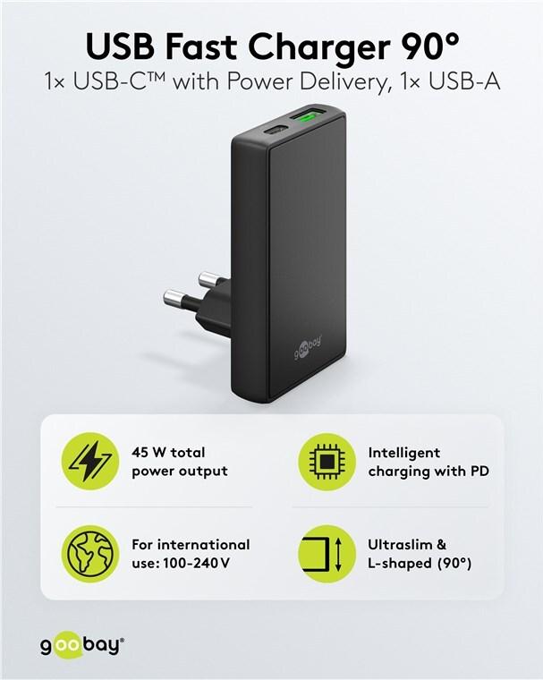 • Goobay USB-C PD GaN Dual-Schnellladegerät 90° Flat 45 W schwarz - 1x -Anschluss (75719)