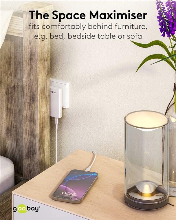 • Goobay USB-C PD GaN Dual-Schnellladegerät 90° Flat 45 W weiß - 2x -Anschlüsse (75722)