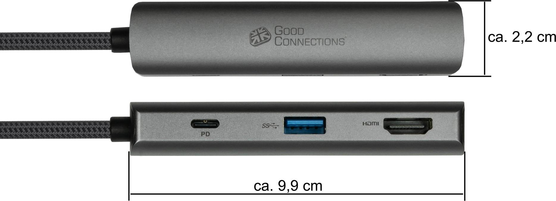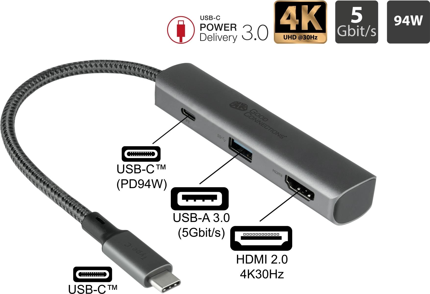 • Good Connections USB-C -Hub 3-Port 1x HDMI 2.0 PD 94W USB 3.0 A anthrazit Good (HUB-C002A)