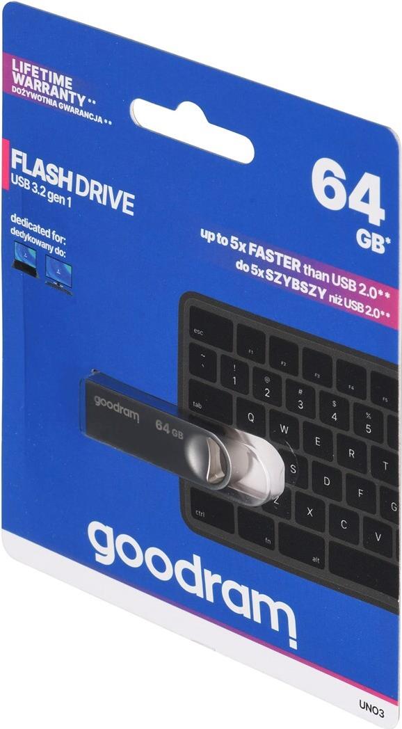 Goodram USB UNO3-0640S0R11 USB-Stick 64 GB USB Typ-A 3.2 Gen 1 (3.1 Gen 1) Silber (UNO3-0640S0R11)