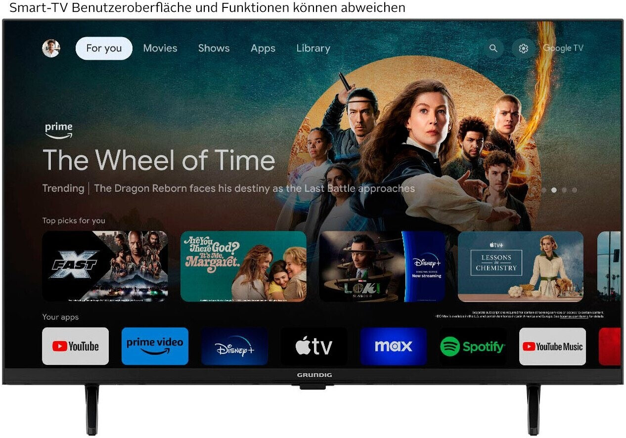 • Grundig 32 VOE 64 Fernseher 32 Zoll (80 cm) LED TV, Google TV, HD Ready, Dolby Digital, Magic Fidelity, Chromecast Built-in, Bluetooth, Smart TV, Sprachsteuerung, Schwarz [Energieklasse E] (EB4T00)