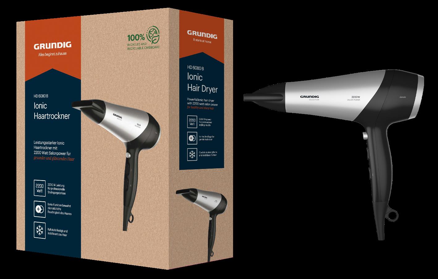 Grundig HD 6080 B Haartrockner 2200 W Schwarz - Silber (GMS5030)