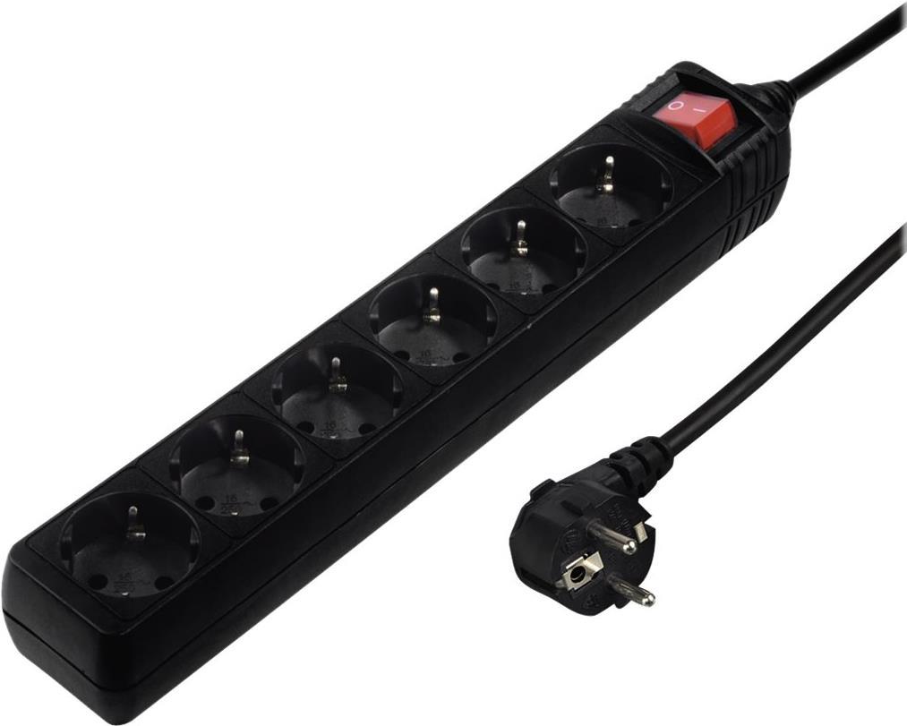 Hama Multiple Socket Outlet - Steckdosenleiste - Wechselstrom 230 V - 3680 Watt - Ausgangsanschlüsse: 6 - 5,0m Schnur - Schwarz (00137266)