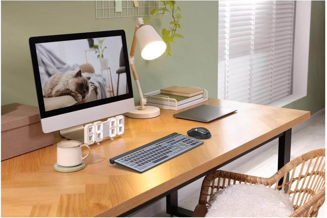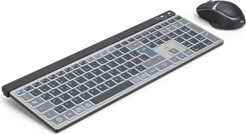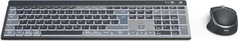Das Tastatur- und Maus-Set Hama WKM-750 bietet eine Kombination aus Funktionalität und Komfort für vielfältige Computeranforderungen. Diese für die Kompatibilität mit PC, Mac, Android und Apple iOS entwickelte Lösung für mehrere Geräte gewährleistet die plattformübergreifende Integration. Die Tastatur verfügt über 113 Tasten und ein ergonomisches Design mit einstellbarer Höhe und hintergrundbeleuchteten Tasten, die das Benutzererlebnis verbessern und das Arbeiten unter verschiedenen Lichtverhältnissen erleichtern. Die optische Technologie von Tastatur und Maus sorgt für eine reaktionsschnelle Leistung, während die Bewegungsauflösung der Maus von bis zu 3200 DPI Präzision in verschiedenen Anwendungen gewährleistet. Drahtlose Verbindungsoptionen, darunter ein USB-Funkempfänger und Bluetooth 5.2, bieten Flexibilität ohne die Einschränkungen von Kabeln. Mit einer maximalen Reichweite von 10 m und einer integrierten LED-Batteriestandsanzeige bietet dieses Set den Benutzern Effizienz und Funktionalität.
