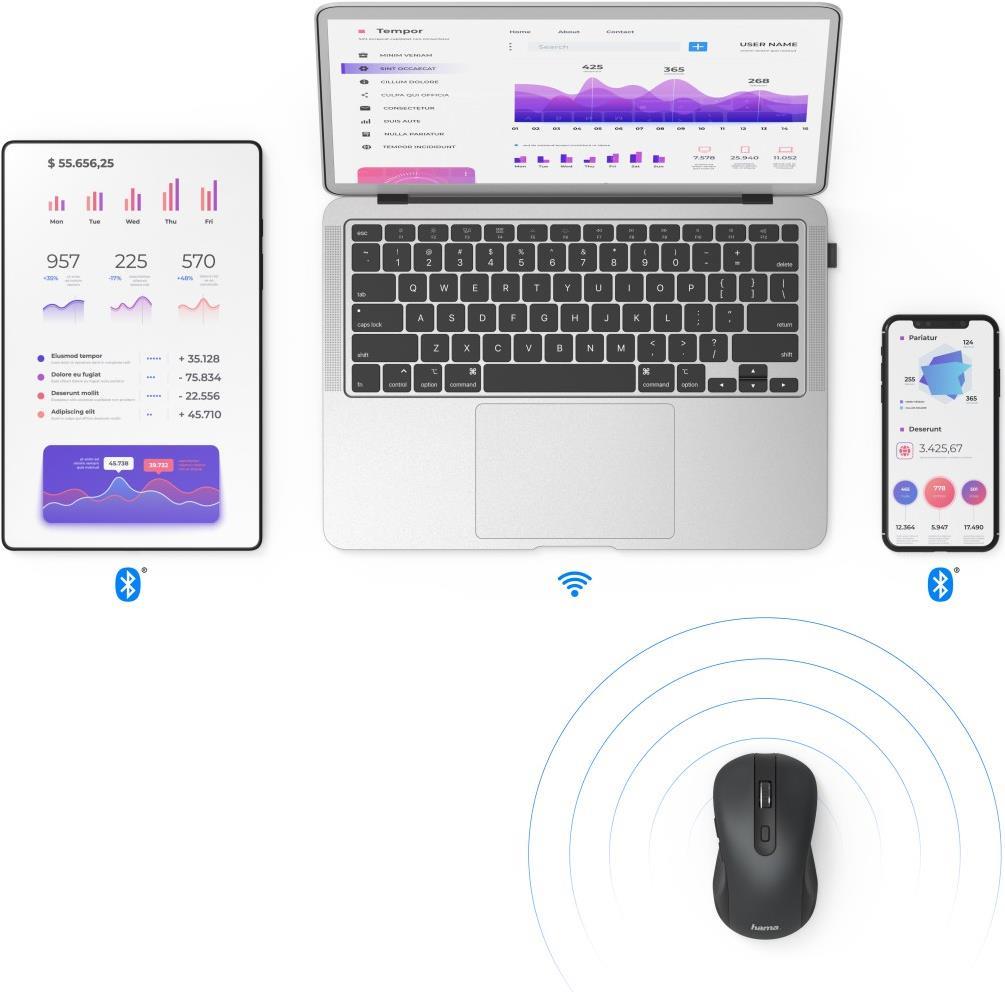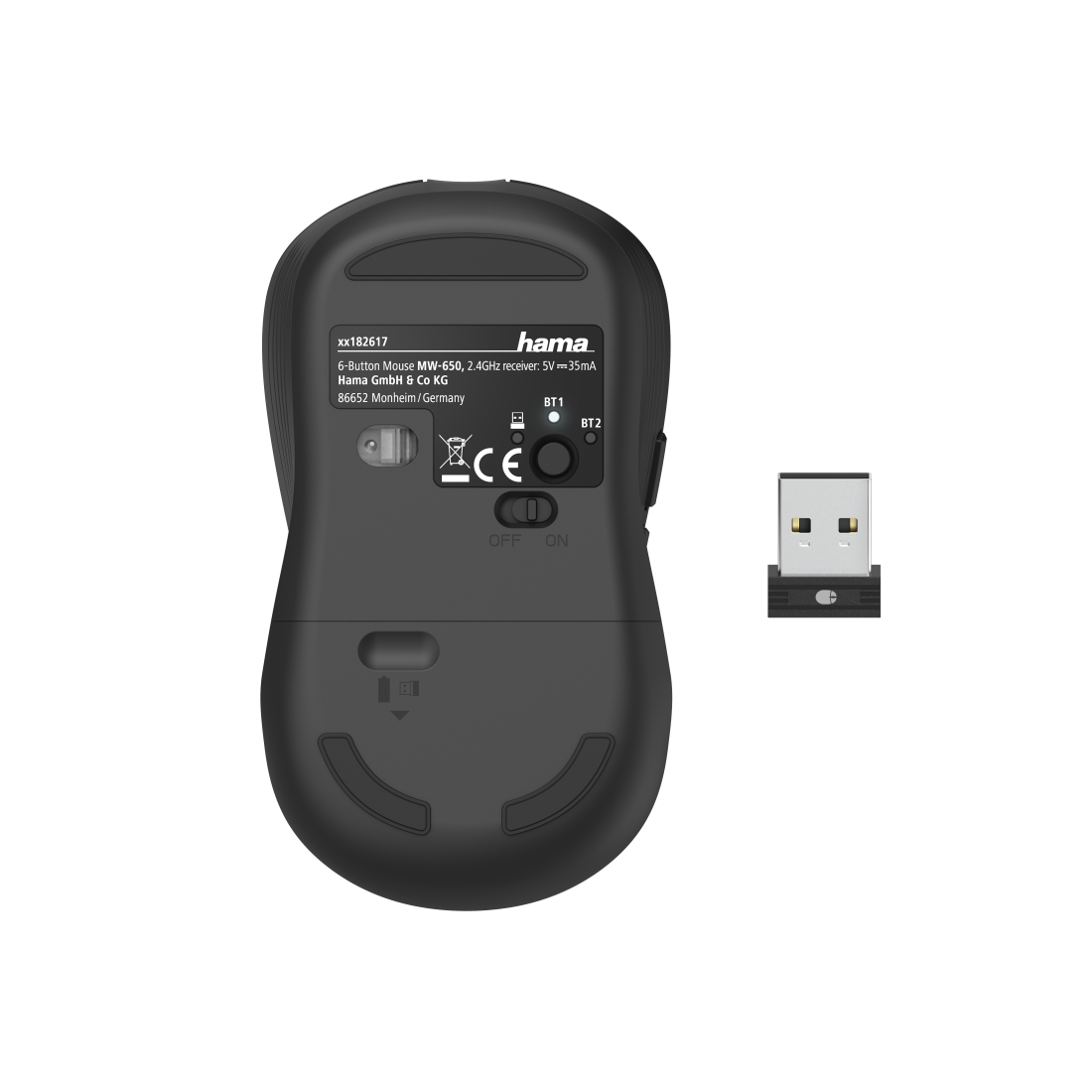 | Produktbeschreibung | Hama MW-650 - Maus - 2.4 GHz, Bluetooth 5.0 - Schwarz |