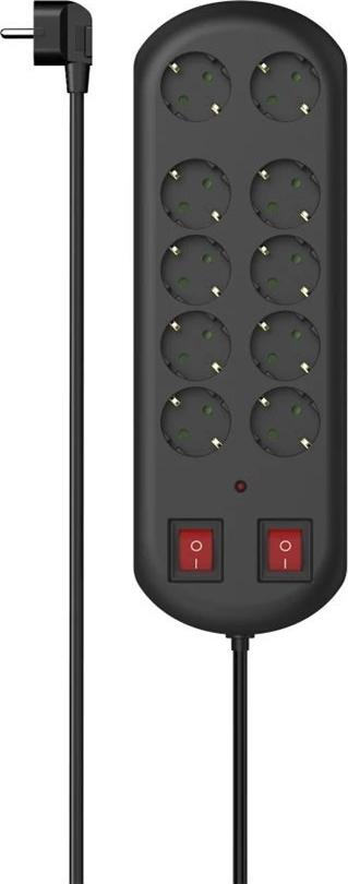 Hama Steckdosenleiste, 10-fach, Überspannungsschutz, zwei Schalter, 2 m, Schwarz (00223164)