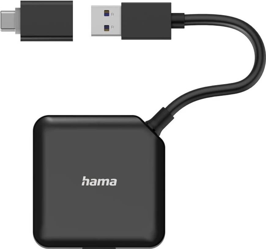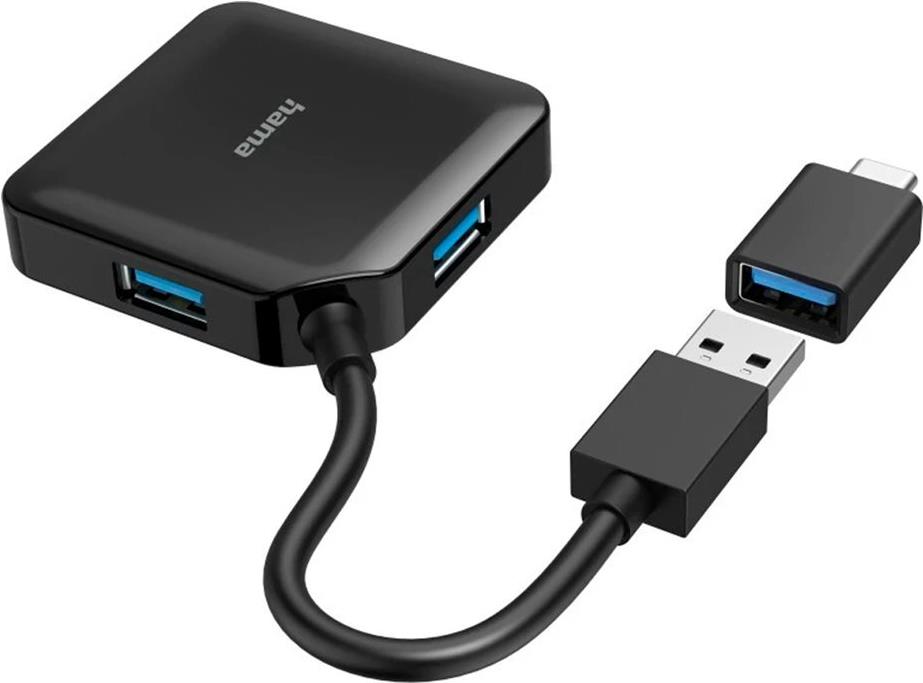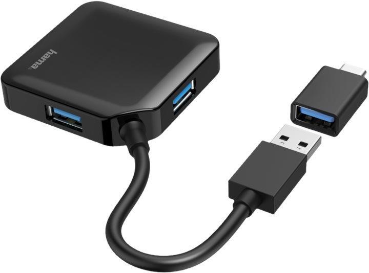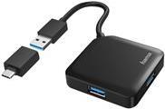 Hama USB-A-Hub, 4 Ports, USB 3.0, 5 Gbit/s, inkl. USB-C Adapter (00200116)