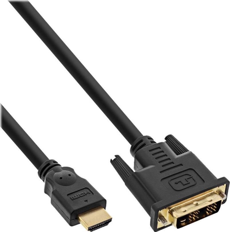 HDMI-DVI Kabel, InLine®, vergoldete Kontakte, HDMI Stecker auf DVI 18+1 Stecker•• unterstützt höchste Auflösungen (Single Link)• maximale Datendurchsatzrate 4,95 Gb/s• Plug-and-play durch automatische Steckererkennung• ein hochdichter PE-Kunststoff verhindert Verlustleistungen, die durch minderwertige Isolation entstehen kann• hochdichte Abschirmung für beste Beständigkeit durch Signale von außen• Anwendungen: Grafikkarten, TFT-Geräte, Digital-TV, Blu-ray Player, DVD Player, Set-Top Boxen, Digitalreceiver, etc.• HDMI Stecker (A) zu DVI-D (18+1) Stecker• HDMI 1.3 kompatibles Kabel• Vergoldete Kontakte für beste Signalübertragung und geringste Verluste• Farbe schwarz• 1080p / FullHD wird unterstütztHauptmerkmale
