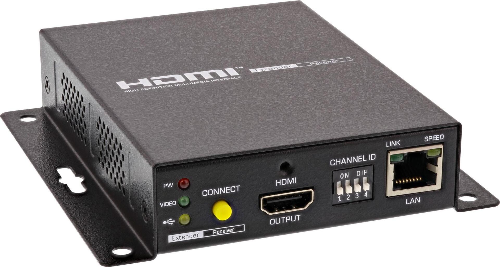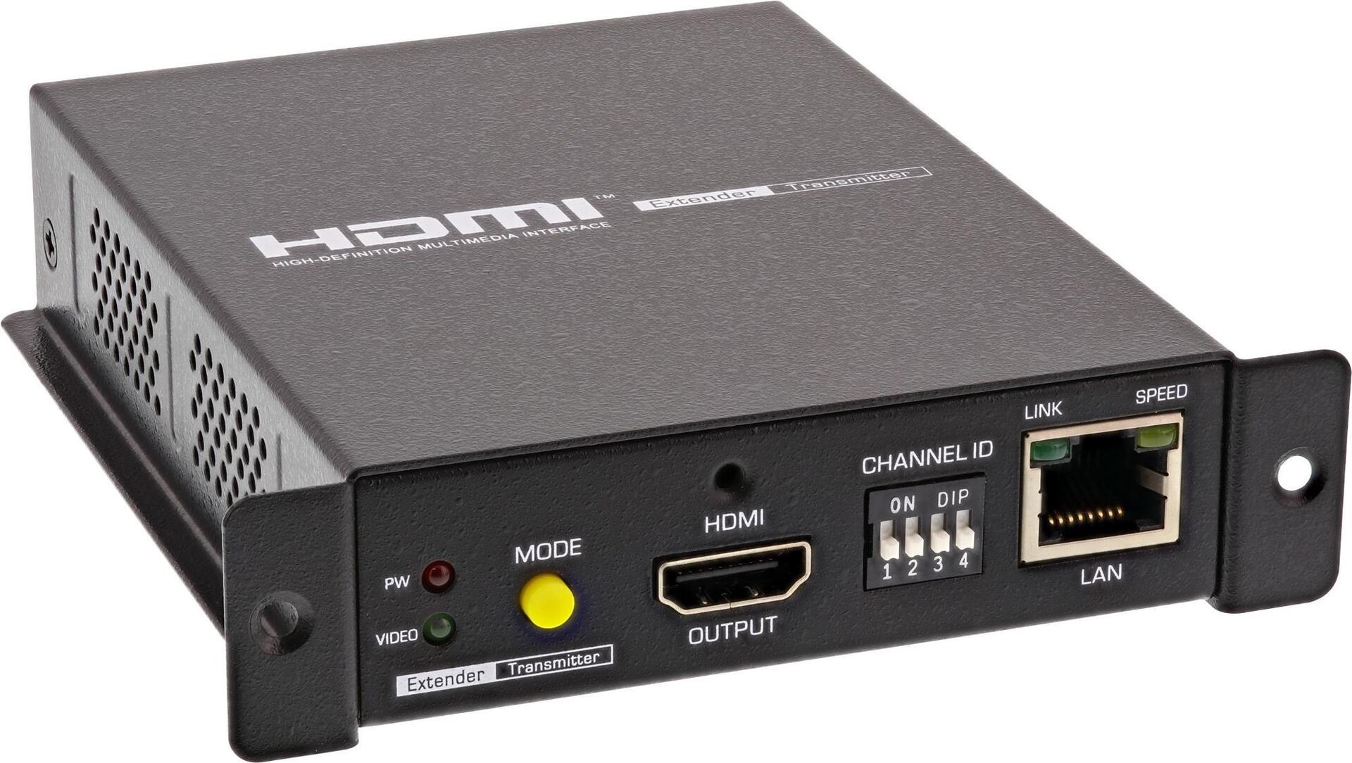 Der InLine® 64601 4K over IP Extender besteht aus zwei verschiedenen Einheiten, der Sender- und der Empfängereinheit. Es ist ein LAN-basierter Extender und arbeitet paarweise, um Ihr HDMI-Video vom lokalen Player über ein aktives LAN auf eine Fernanzeige zu erweitern. Zur Verbindung von Sender und Empfänger können Sie entweder eine direkte CATx-Kabelverbindung oder einen Gigabit Ethernet Switch dazwischen verwenden. Mit der Funktion des CATx-Kabels kann das Bild bis zu 100 m lang geliefert werden, ohne dabei die Bildqualität zu beeinträchtigen.Die unterstützte Auflösung kann bis zu 2160p@30Hz mit 7.1 Audiokanal betragen. Anwendbar entweder über einem Ausstellungsraum, Arbeitsflächen, Demoraum, Kontrollzentrum oder anderen geschäftskritischen Szenarien.Mit mehreren Empfängern und Sendern lassen sich sogar Punkt-zu-Punkt- oder Punkt-zu-Mehrpunkt- und Videowallszenarien realisieren.Eigenschaften:• 4K Über Gigabit Netzwerk mit extrem niedriger Latenzzeit von 1 Frame/Sek.• Bis zu HDMI 2.0 4K 2160p@30Hz 4:2:0 Videoeingang und HDCP2.2 wird unterstützt.• Unterstützt 7.1 ch Audio oder mehr (LPCM/DTS/Dolby/Dolby/Dolby ATMOS)• Hybrid-Videoausgang (Jeder Empfänger kann unabhängig voneinander ein anderes Videoformat wählen)• HDMI Audio Extract to Analog Audio Ausgang (nur 2 Kanal LPCM Audio)• Max. Bitratenkontrolle (10 Mb/s ~ 800 Mb/s)• Video-Schnappschuss (Video-Capture)• USB 2.0 Pass-Thru für IP KVM Anwendungen• Webseitenbasierte Verwaltung• RS-232 Verwaltung der seriellen Steuerbefehle• Https/Telnet-Befehlsverwaltung• Automatische EDID-Konfiguration• Video der Ausgabe drehbar• Teilvergrößerung und Verschiebung des Ausgangsvideos für Videowand und unregelmäßige Videowandanwendung• 4-bit DIP-Schalter für 16 Streamkanäle• Kleine Größe / VESA-Halterung• Rack-MontageSpezifikation:Sender:• TX/RX Anschluss: 1x RJ45 Buchse• AV-Schnittstelle: 1x HDMI Buchse (In), 1x HDMI Buchse (Out, Loopback)• USB-Gerät: 1x USB Typ B Buchse• IR: 1x 3,5mm Klinke weiblich• RS232: 1x RJ12 Buchse• Abmessung (LxBxH): 95x115x26mmEmpfänger:• TX/RX Anschluss: 1x RJ45 Buchse• AV-Schnittstelle: HDMI-Buchse (Out) x 1• USB-Gerät 4x USB Typ A Buchse• IR: 1x 3,5mm Klinke weiblich• RS232: 1x RJ12 Buchse• Abmessung (LxBxH): 115x115x26mmAllgemein:• Bildauflösung: 3840 x 2160 bei 30Hz• Netzteil: DC 5V• Betriebstemperatur 0~40°C• Lagertemperatur: -20~60°C• Feuchtigkeitsgrenzwerte: 0~90% RH, nicht kondensierend