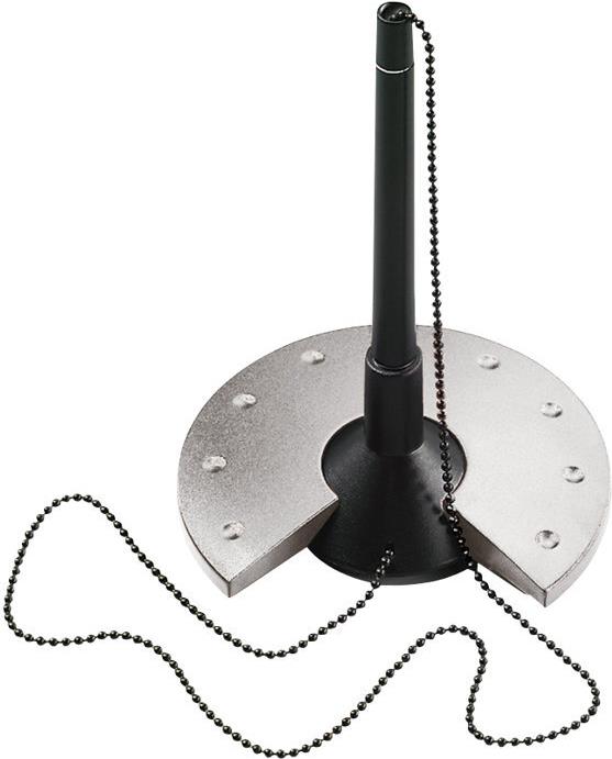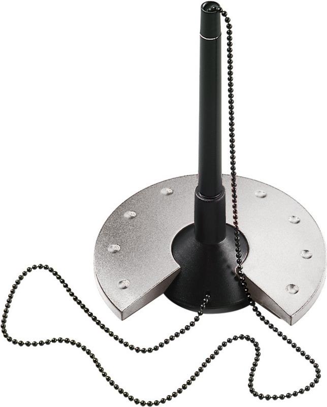 helit Kugelschreiber-Ständer Silver, schwarz/silber mit schwarz verchromter Metallkette, aus Polystyrol, mit Standardmine, Strichstärke: M, Kugelschreiber und Sockel in schwarz, Abdeckplatte in silber, Durchmesser: 100 ...