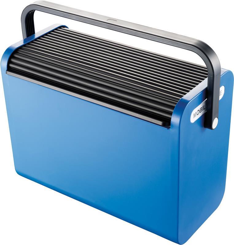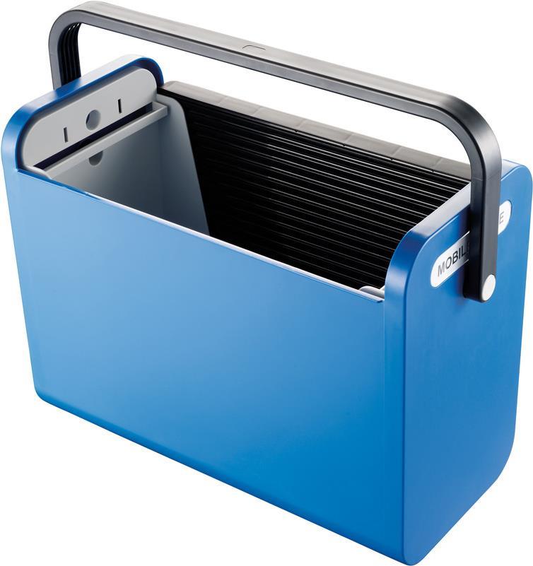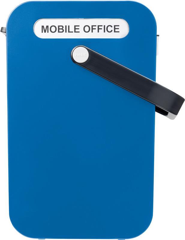helit Mobilbox inkl. Mobilköcher, blau schwarzer Rolloverschluss, für 25 Hängemappen oder 2 Akten- ordner DIN A4, schwenkbarer Tragegriff, mit 2 Beschriftungs- feldern, integrierter Mobilköcher, stapelbar, Maße: ...