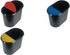 Für kleine Bürobetriebe hat sich seit Jahren das System Duo bewährt. Diese Behälter stehen am Arbeitsplatz und sind in einzelne Kammern unterteilt. Die farbige Kennzeichnung unterscheidet.