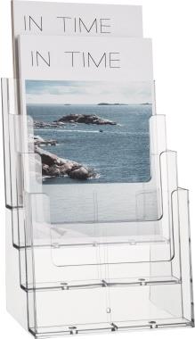 helit Tisch-Prospekthalter, DIN A5 hoch, 4 Fächer, glasklar aus Acryl, Maße: (B)165 x (T)155 x (H)260 mm (H23522-02)