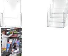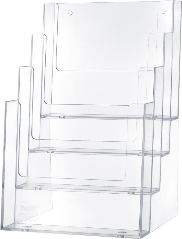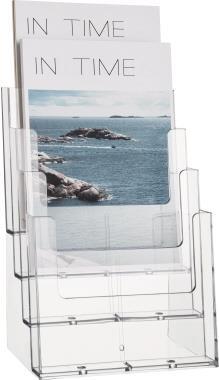 helit Tisch-Prospekthalter, DIN A5 hoch, 4 Fächer, glasklar aus Acryl, Maße: (B)165 x (T)155 x (H)260 mm (H2352202)