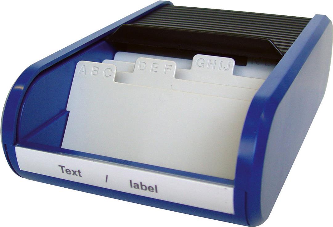 helit Visitenkartenbox Linear, blau 8-teilige alphabetische Unterteilung, schwarzer Rollover- schluss, für ca. 300 Visitenkarten in DIN A8, mit Gummifüßen, Maße: (B)136 x (T)240 x (H)67 (H6218093)