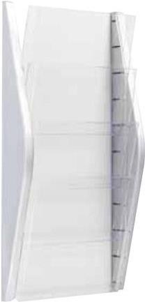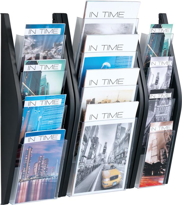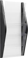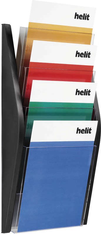 helit Wand-Prospekthalter, DIN A4 hoch, 4 Fächer, schwarz Seitenteile aus farbigem PP, Fächer aus glasklarem PS (H6270195)