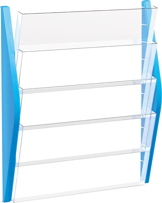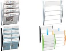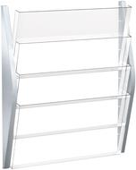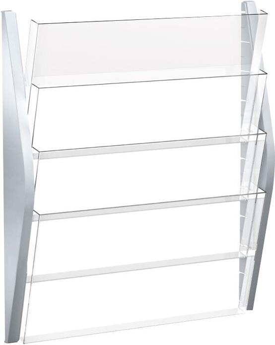 helit Wand-Prospekthalter, DIN A3 quer, 4 Fächer, silber Seitenteile aus farbigem PP, Fächer aus glasklarem PS, - 1 Stück (H6270400)