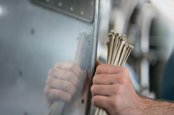 Verbindet Leistungsmerkmale eines Metallkabelbinders mit der einfachen Installation eines Kunststoffkabelbinders