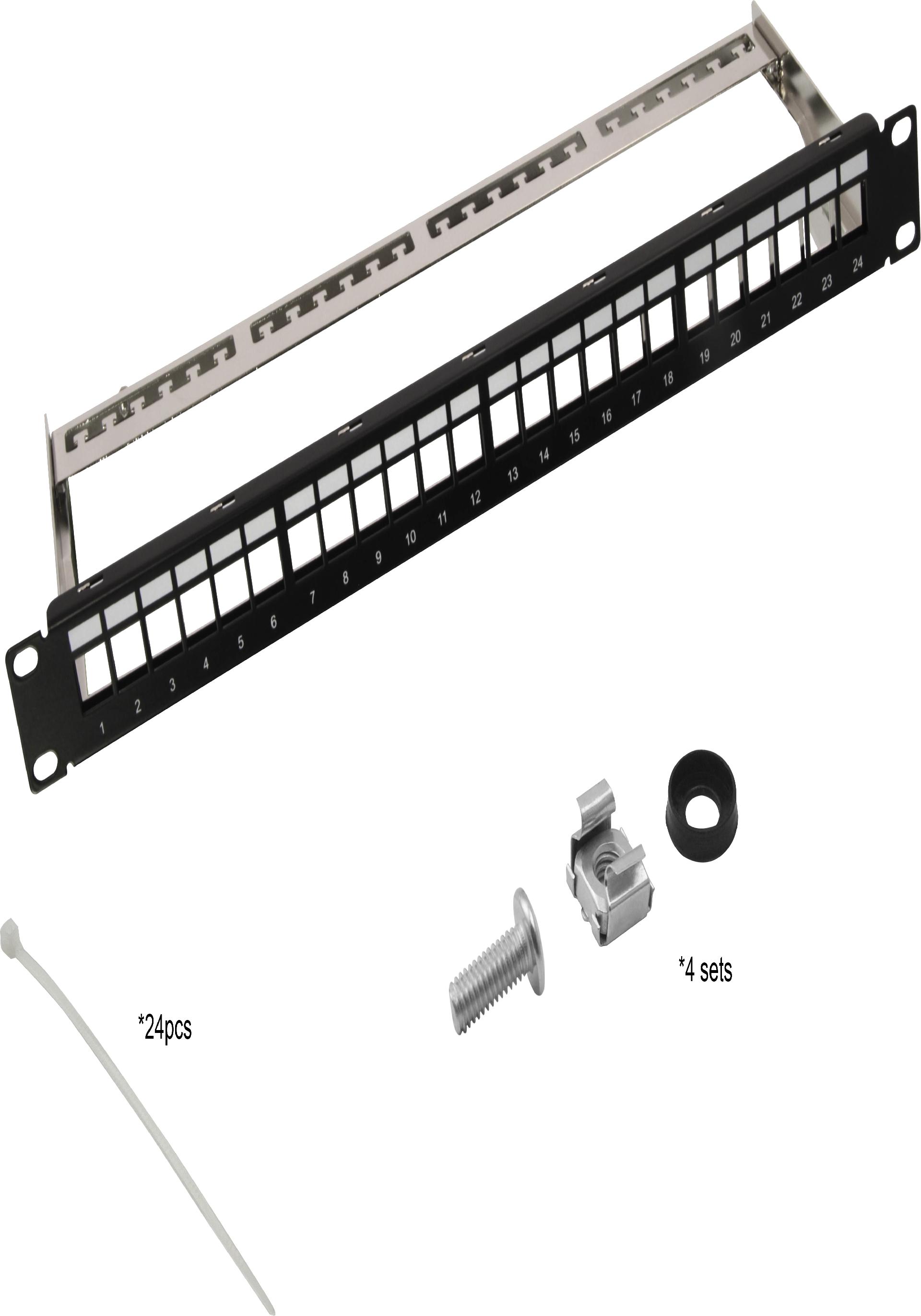 Helos 19“ Modulträger Keystone 1 HE 24 Port Entlastungsschiene schwarz - 24-Port - Schwarz (371980)
