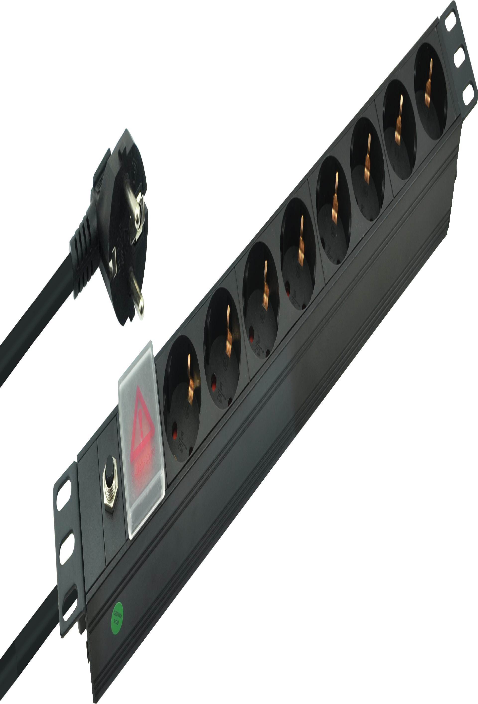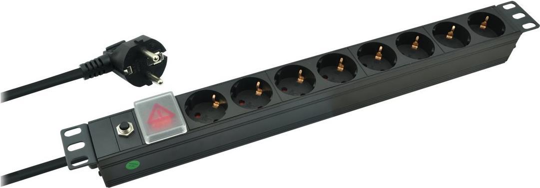 Helos 48,30cm (19") Steckdosenleiste PROFESSIONAL, 8-fach, schwarz, 2,0m, mit Schalter 48,30cm (19") PDU-Leiste für professionelle Anwendungen , 2,0m Zuleitung , 1 HE , mit Überspannungsschutz (ÜSS) , Aluminium-Gehäuse , Leiterquerschnitt: 1,5 ...